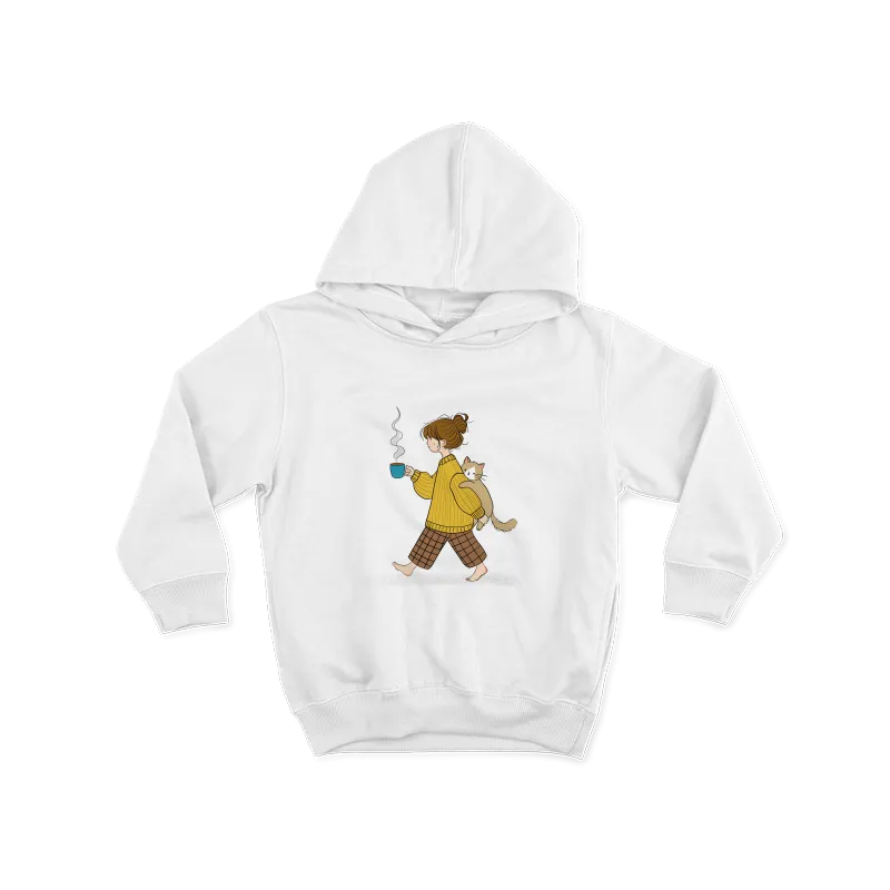 Kedi ve kahve Çocuk Hoodie