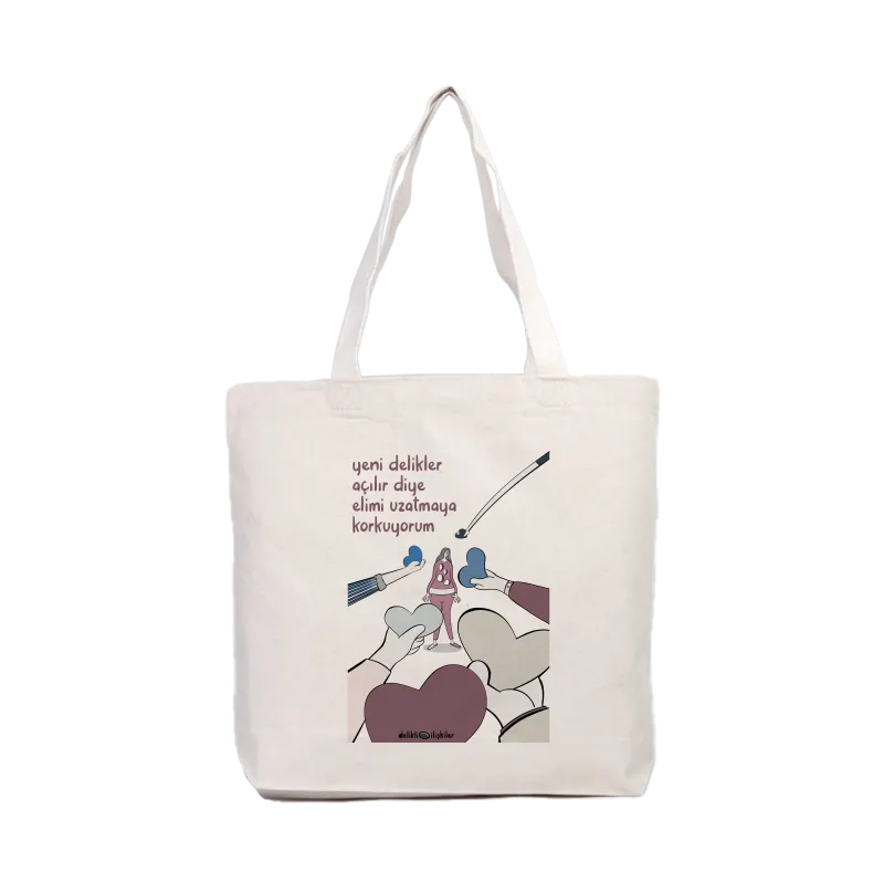 yeni delikler açılır diye elimi uzatmaya korkuyorum Kanvas Çanta