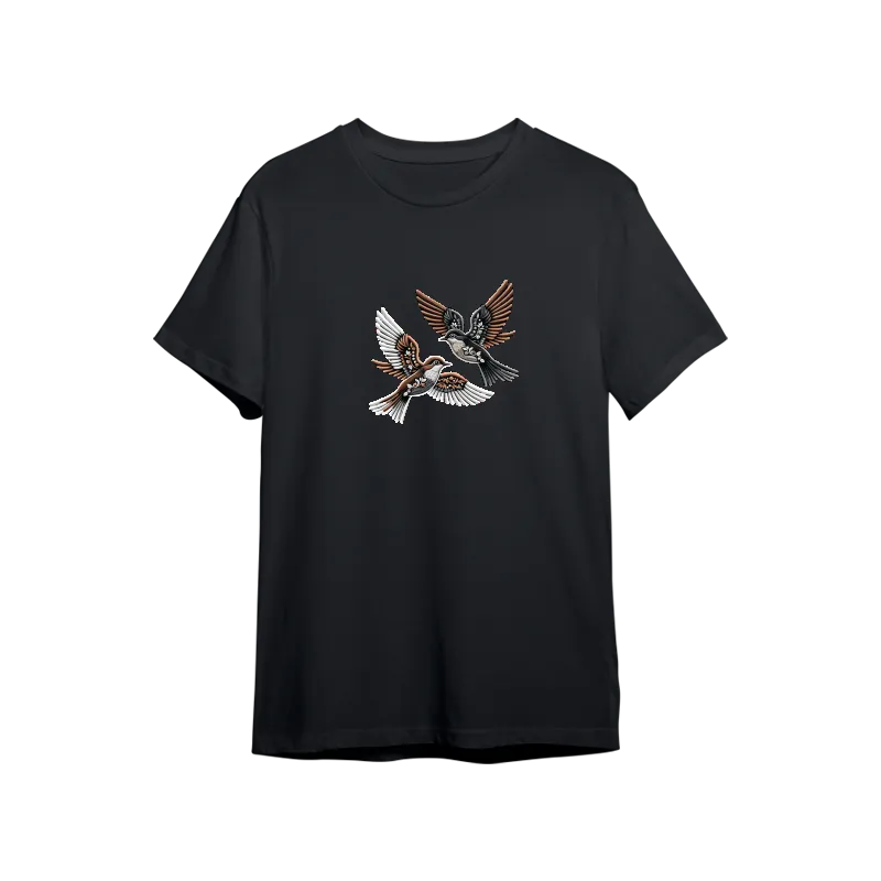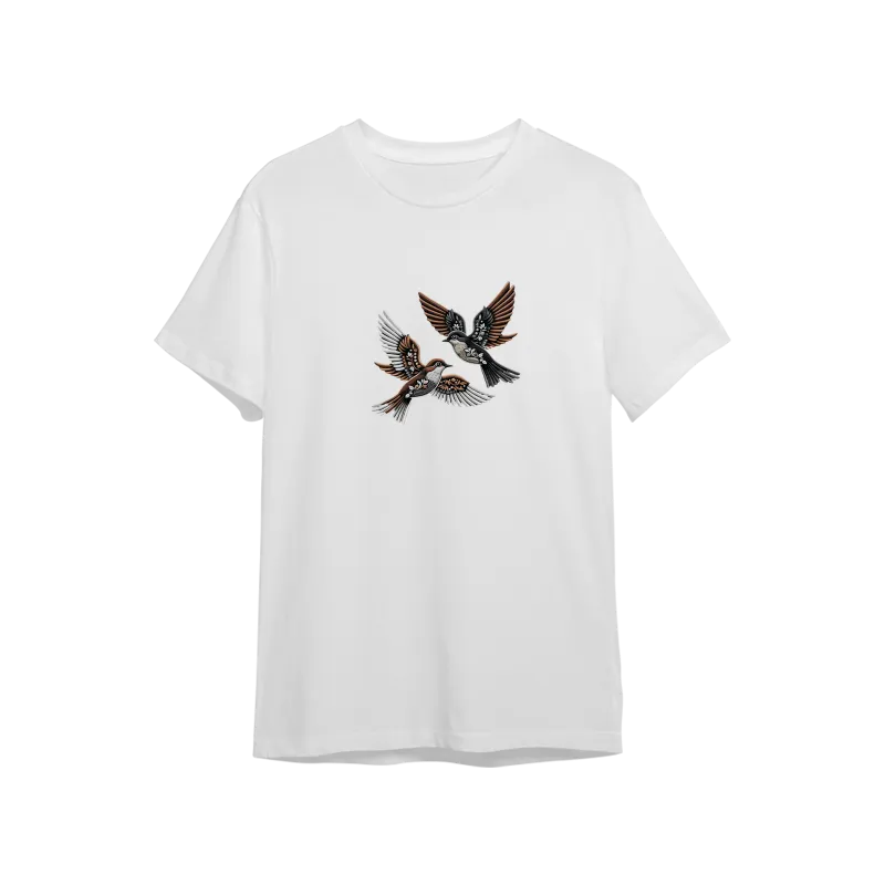 Kuşlar, nakış desenli Oversize Tshirt
